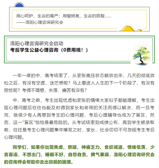 公益心理咨詢月:中、高考后學(xué)生心理咨詢
